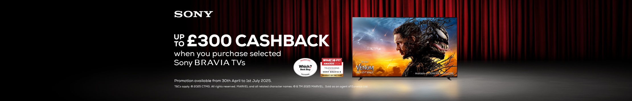 Up to £300 cashback on selected Sony BRAVIA TV's. T&C apply. See in store for details.
